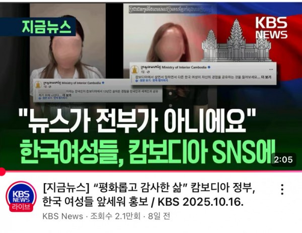 ▲KBS는 10월 16일, 캄보디아 내무부가 한국인 여성을 동원해 인터뷰 영상을 제작했다고 사실을 왜곡하여 보도했다.